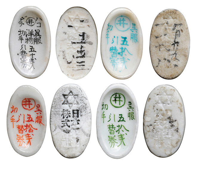 4495 函館丸井今井 陶製切手(商品券) 五拾銭4色組(黒・赤・緑・青) 佳~美 5,000円