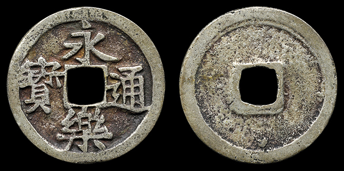2014 永楽銀銭 鋳造 約3.0g 針穴1 上  40,000円