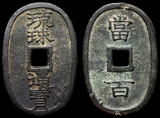 2102 琉球通宝 当百 中字 爪求 背手形印[250系] 並~佳  14,000円