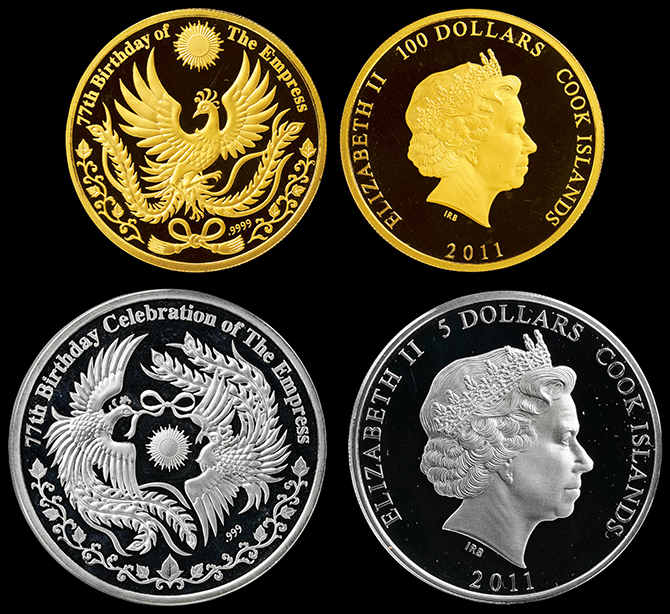 3002 クック島 5D銀(31.1g)、100D金(15.5g) 2点組 特製ケース付 PF未 384,000円