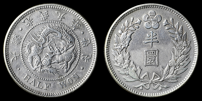 3031 朝鮮 半円銀 光武9年 KM1129 日本貨幣商協同組合 鑑定書付 佳 18,000円