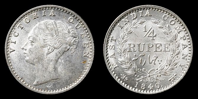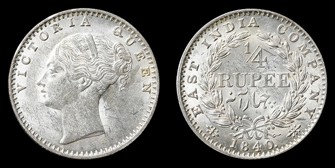 3044 英領インド 1/4R銀 1840 KM453 準未~未 8,000円