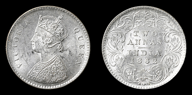 3045 英領インド 2A銀 1862 KM469 未 3,500円