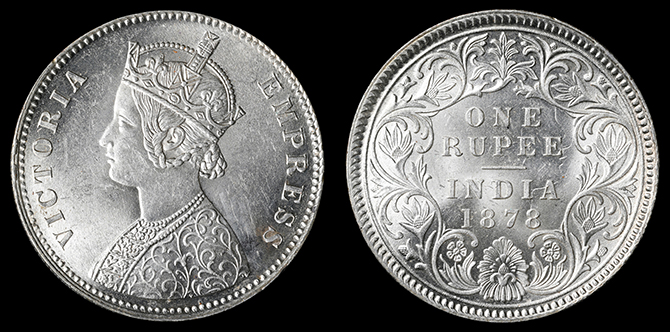 3054 英領インド 1R銀 1878 KM492 未 10,000円