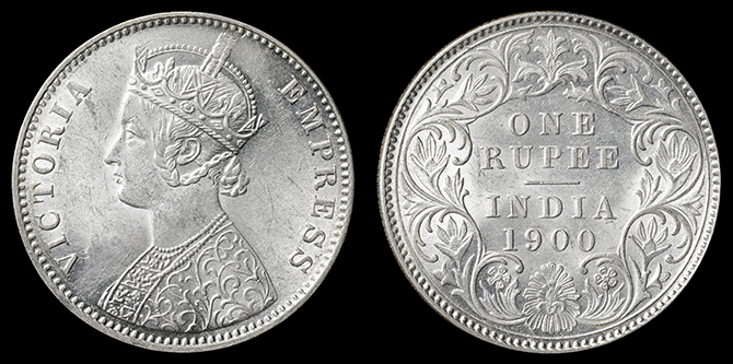 3055 英領インド 1R銀 1900 KM492 準未~未 10,000円