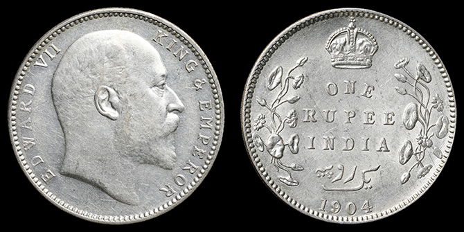 3061 英領インド 1R銀 1904 KM508 準未 6,000円
