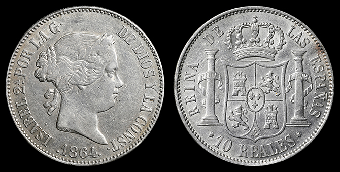 3065 スペイン 10R銀 1864 KM611.2 美 10,000円