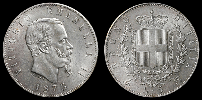 3071 イタリア 5L銀 1873 KM8.3 極美 25,000円