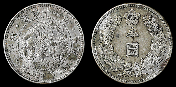 3085 朝鮮 半円銀 光武11年 KM1135 上 10,000円