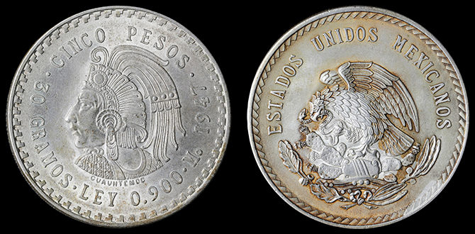 3102 メキシコ 5P銀 1947 KM465 極美 7,000円