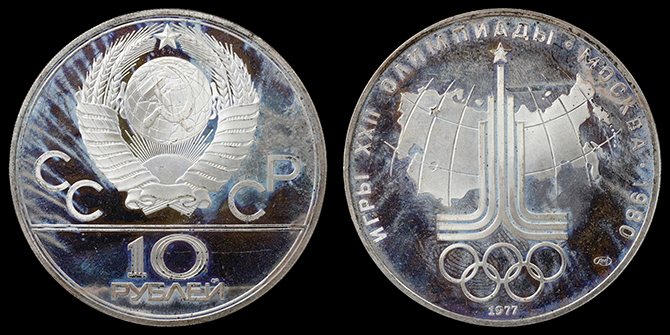3107 ソ連 10R銀 1980 Y150 曇り PF未 7,000円