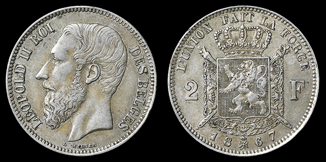 3174 ベルギー 2F銀 1867 KM30.1 上+~美 12,000円