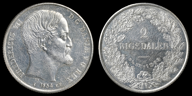 3192 デンマーク 2R銀 1854FK・FF KM761.1 極美 72,000円