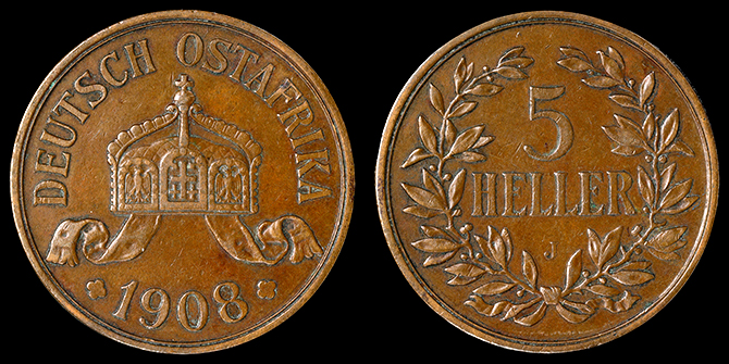 3199 独領東アフリカ 5H銅 1908 KM11 美+ 10,000円