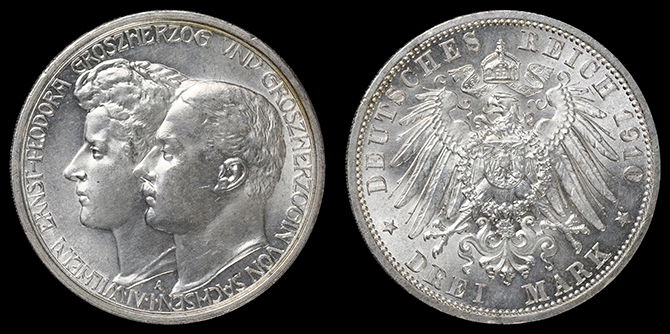 3201 独・ザクセンワイマール 3M銀 1910 KM221 未 17,000円