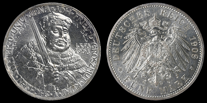 3202 独・ザクセンワイマール 5M銀 1908 KM220 未 50,000円