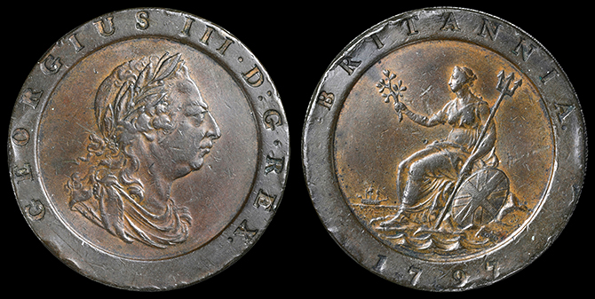 3226 英国 2P銅 1797 KM619 縁少当 美 15,000円