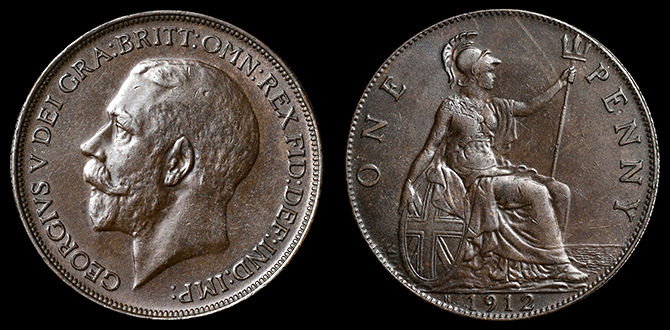 3231 英国 1P銅 1912H KM810 美+ 12,000円