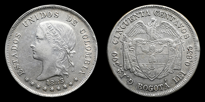 3032 コロンビア 50C銀 1883 KM177.1 美+ 7,000円