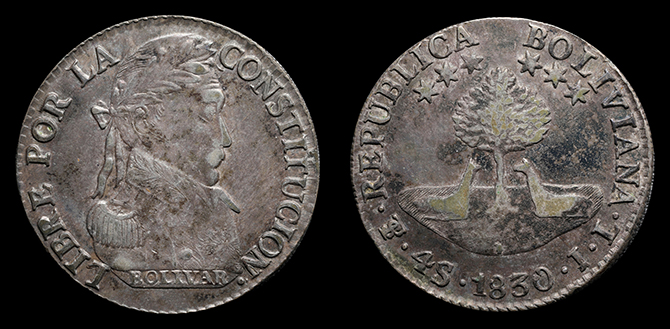 3037 ボリビア 4S銀 1830 KM96a.1 上~美 6,000円
