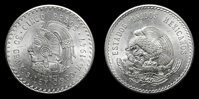 3042 メキシコ 5P銀 1947 KM465 インディアン 未 10,000円
