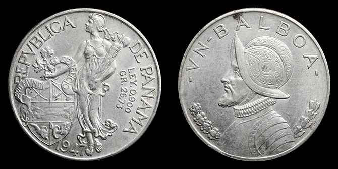 3064 パナマ 1B銀 1947 KM13 美 7,000円