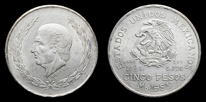 3041 メキシコ 5P銀 1953 KM467 準未~未 8,000円
