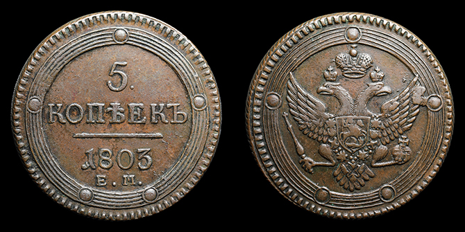 3072 ロシア 5K銅 1803EM C115.1 上~美 6,000円
