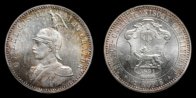 3099 独領東アフリカ 1/2Rp銀 1891 KM4 少トーン 準未~未 7,000円