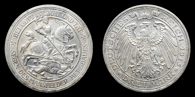 3122 独プロイセン 3M銀 1915 KM539 軽曇り 未 110,000円