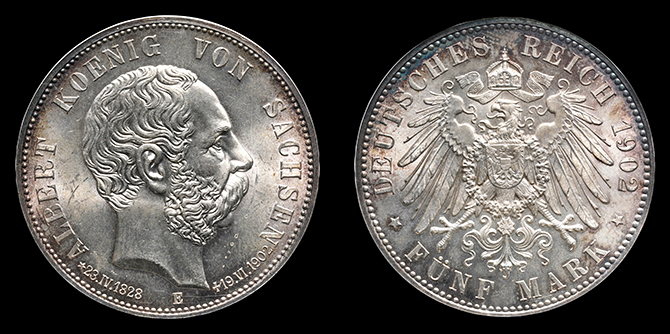 3123 独ザクセン 5M銀 1902 KM1256 NGC(MS64) 少トーン 未+ 60,000円