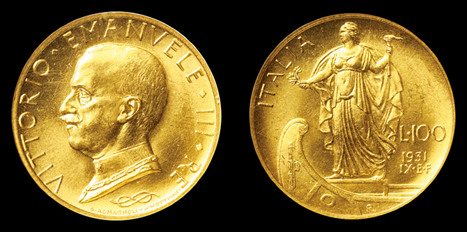3143 イタリア 100L金 1931 KM72 NGC(MS64) 未 300,000円