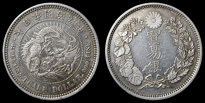 6 貿易銀 明治9年 日本貨幣商協同組合鑑定書付 上〜美 130,000円