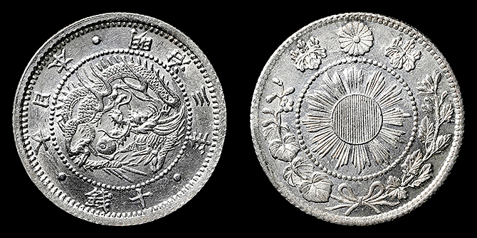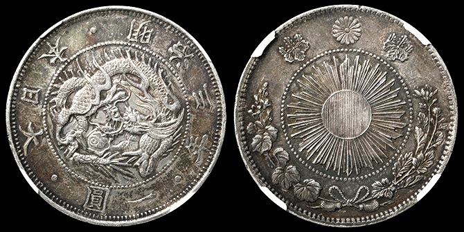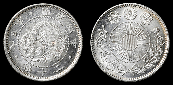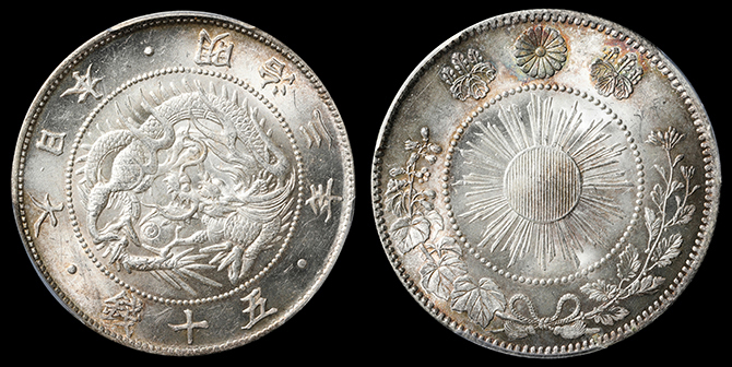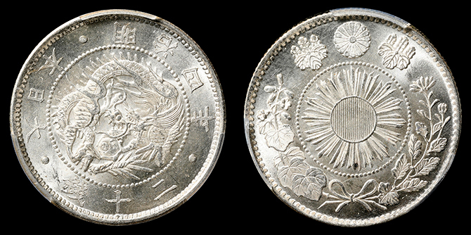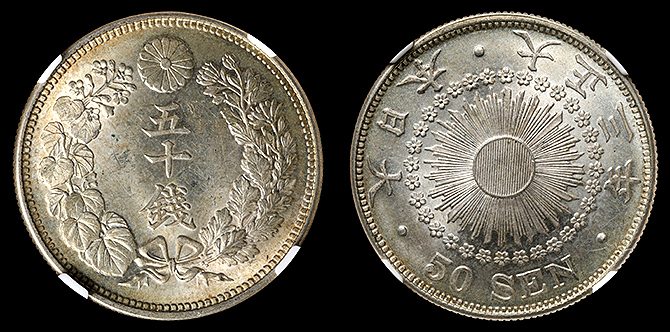 193 旭日竜大型50銭 明治3年 PCGS(MS64+) 軽トーン 未+ 75,000円