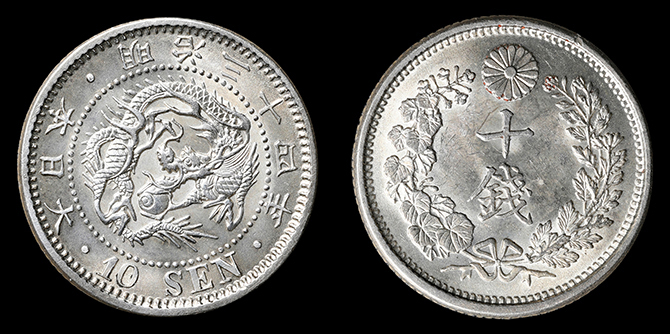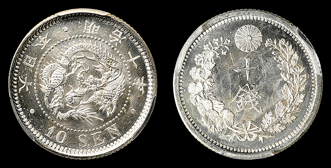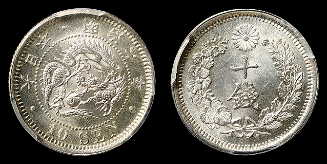 292 竜10銭 明治10年 PCGS(MS65) 未 14,500円