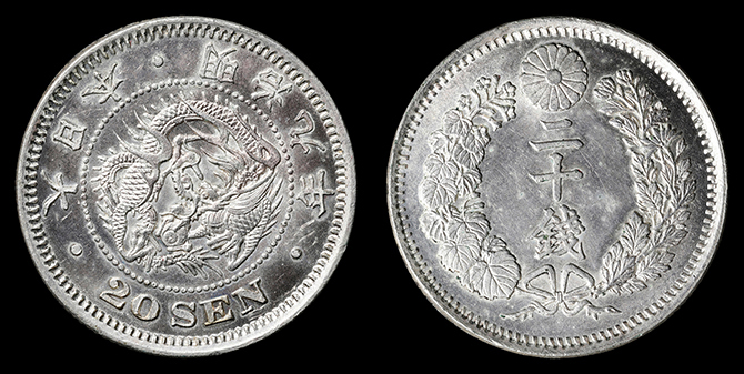 191 旭日竜20銭 明治4年 PCGS(MS66+) 未+ 30,000円