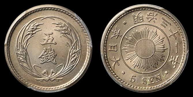 187 大型5銭 大正7年 PCGS(MS67) 未 5,000円