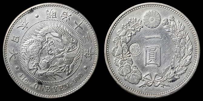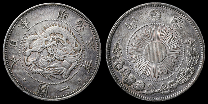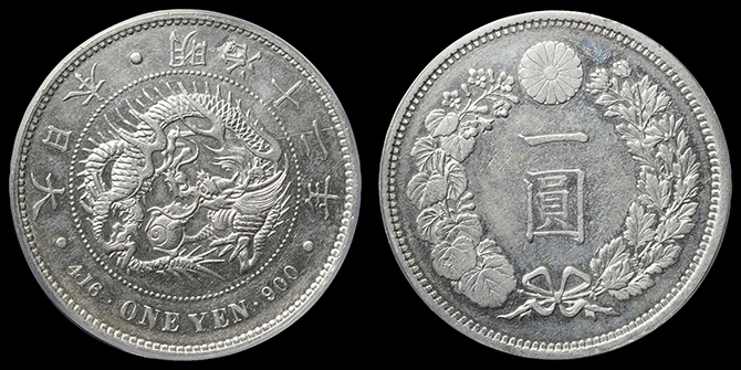 207 円銀 明治13年 左丸銀 PCGS(AU55) 極美 175,000円