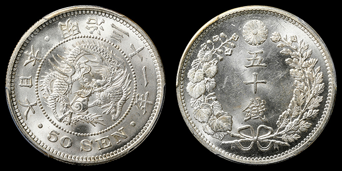 194 竜50銭 明治31年 PCGS(MS64) 未 35,000円