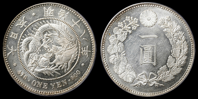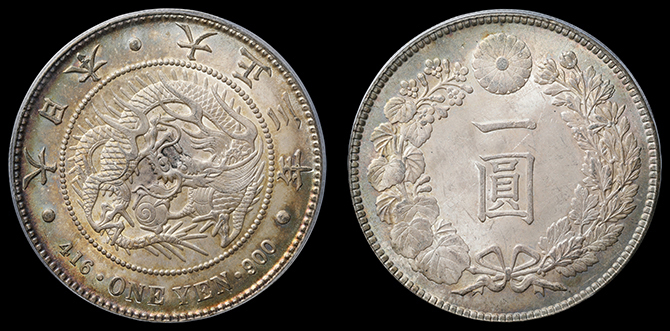201 円銀 明治23年 小頭二 PCGS(MS63) 準未〜未 300,000円