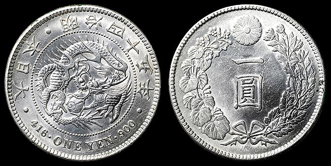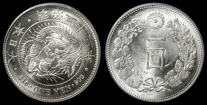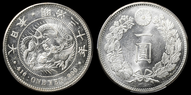 199 円銀 明治30年 PCGS(MS63) 未 70,000円