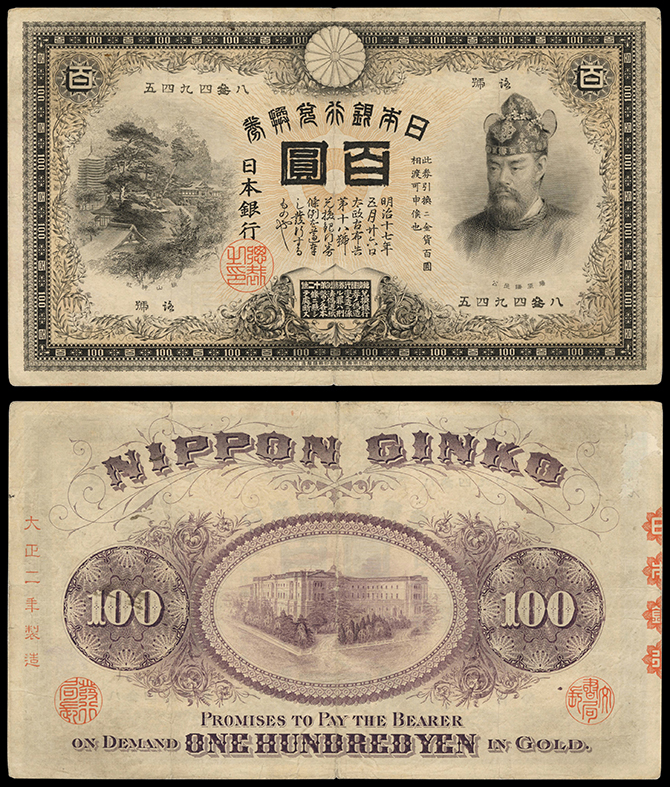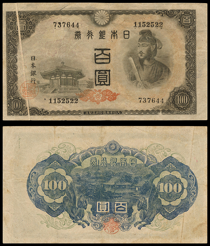 222 裏紫100円 万葉記号(下見してください 返品不可) 裏右上に少補修有 佳 990,000円