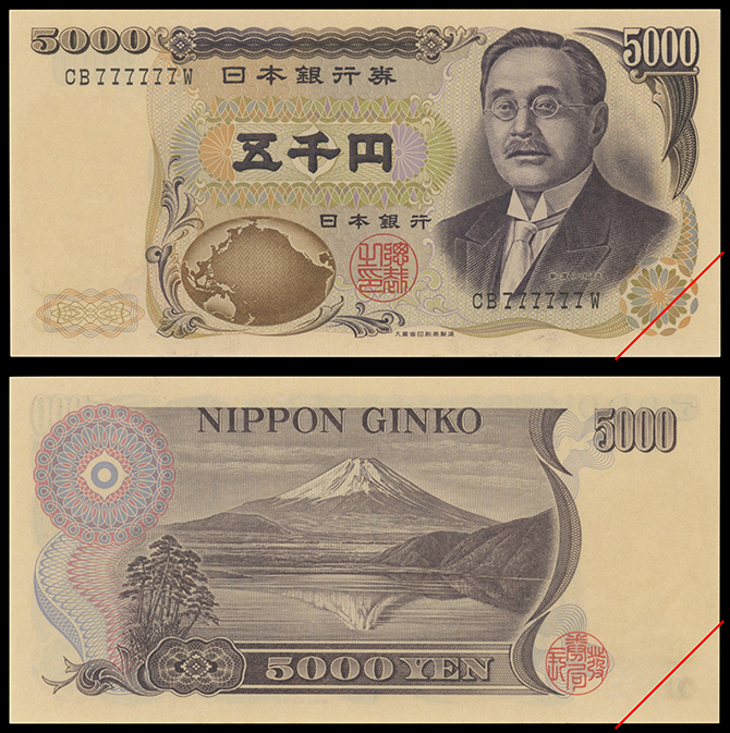 235 新渡戸5千円(黒) CB777777W PCGS(65PPQ) 染み 未 30,000円