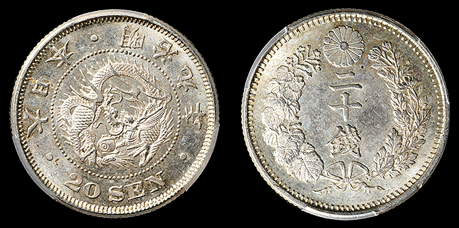 296 竜20銭 明治9年前期 PCGS(MS64) 未 19,000円