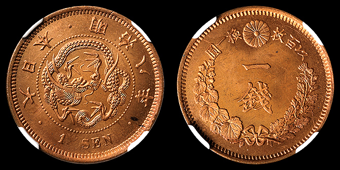 324 竜1銭 明治8年 NGC(MS64RD) 未 25,000円