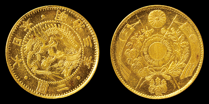 4 旧2円金貨 明治3年 準未〜未 140,000円