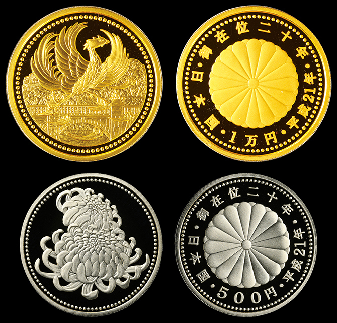 8 天皇在位20年1万円金貨、500円ニッケル黄銅貨2点セット 平成21年 箱付 未 540,000円