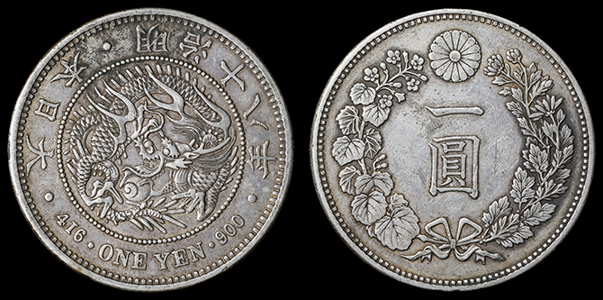 31 円銀 明治18年 深彫鱗 上 15,000円