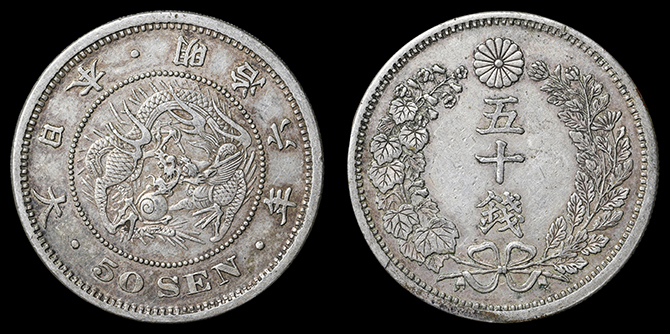 36 竜50銭 明治6年 長年 日本貨幣商協同組合鑑定書付 上〜美 16,000円