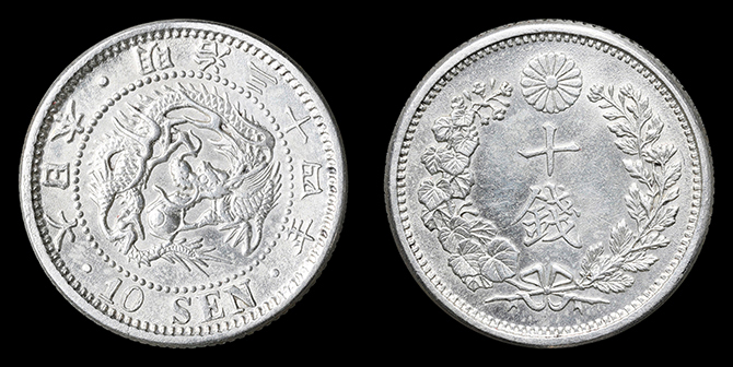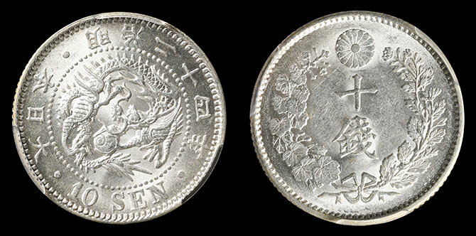 203 竜10銭 明治24年 PCGS(MS63) 未 12,500円